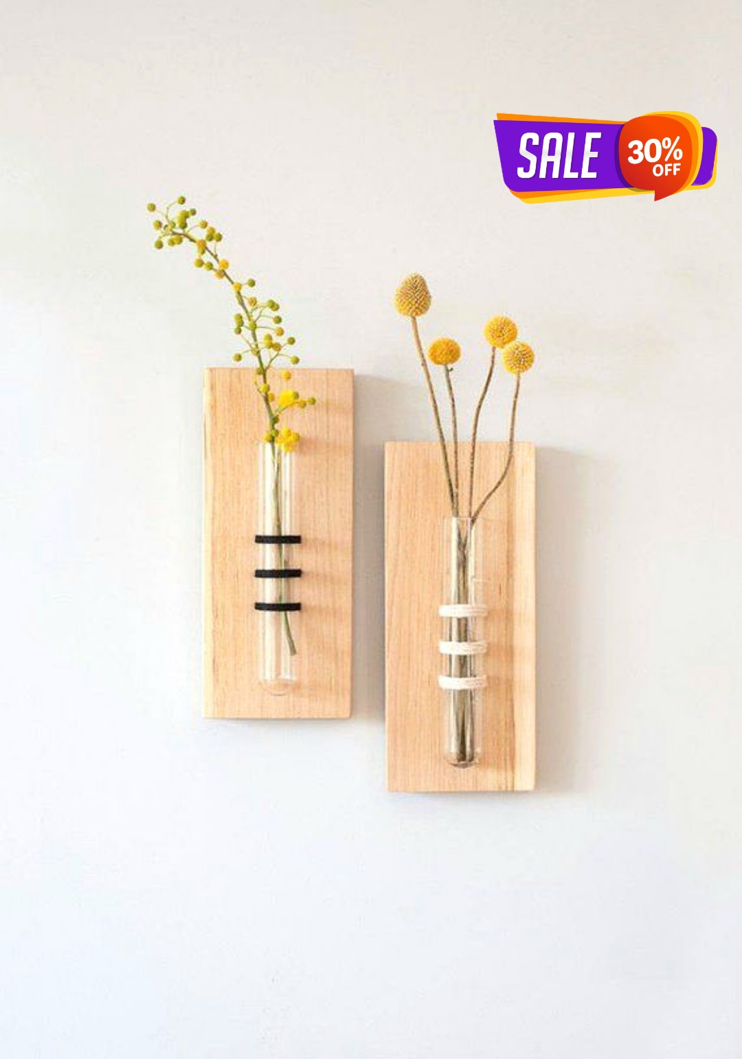 2 Pcs Wooden Test Tube Hanging Flower Vase For Home And Office Decoration