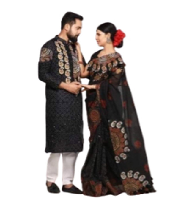 Block Print Couple Set Sharee with Panjabi