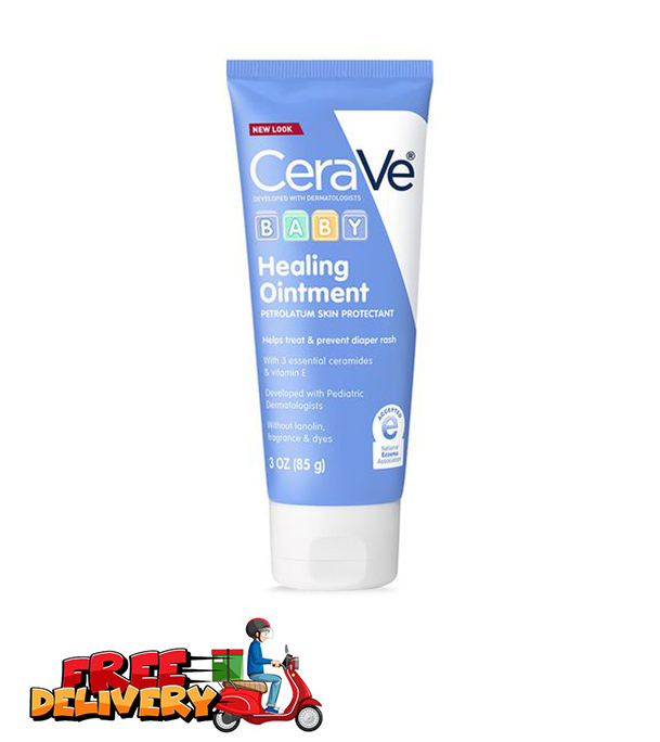 CeraVe Baby Healing Ointment was developed with pediatric dermatologists to help prevent and treat diaper rash. This petrolatum-based baby ointment for diaper rash forms a protective seal that helps seal out wetness and protect baby’s skin. Formulated with three essential ceramides, hyaluronic acid and vitamin E, CeraVe Baby Healing Ointment leaves baby’s skin soothed and helps maintain its protective skin barrier. This fragrance-free and lanolin-free baby healing ointment protects minor skin irritations due to diaper rash and can be used before or after diaper rash irritation starts. This baby healing ointment formula features a silky texture that leaves skin feeling smooth and hydrated without a greasy residue.