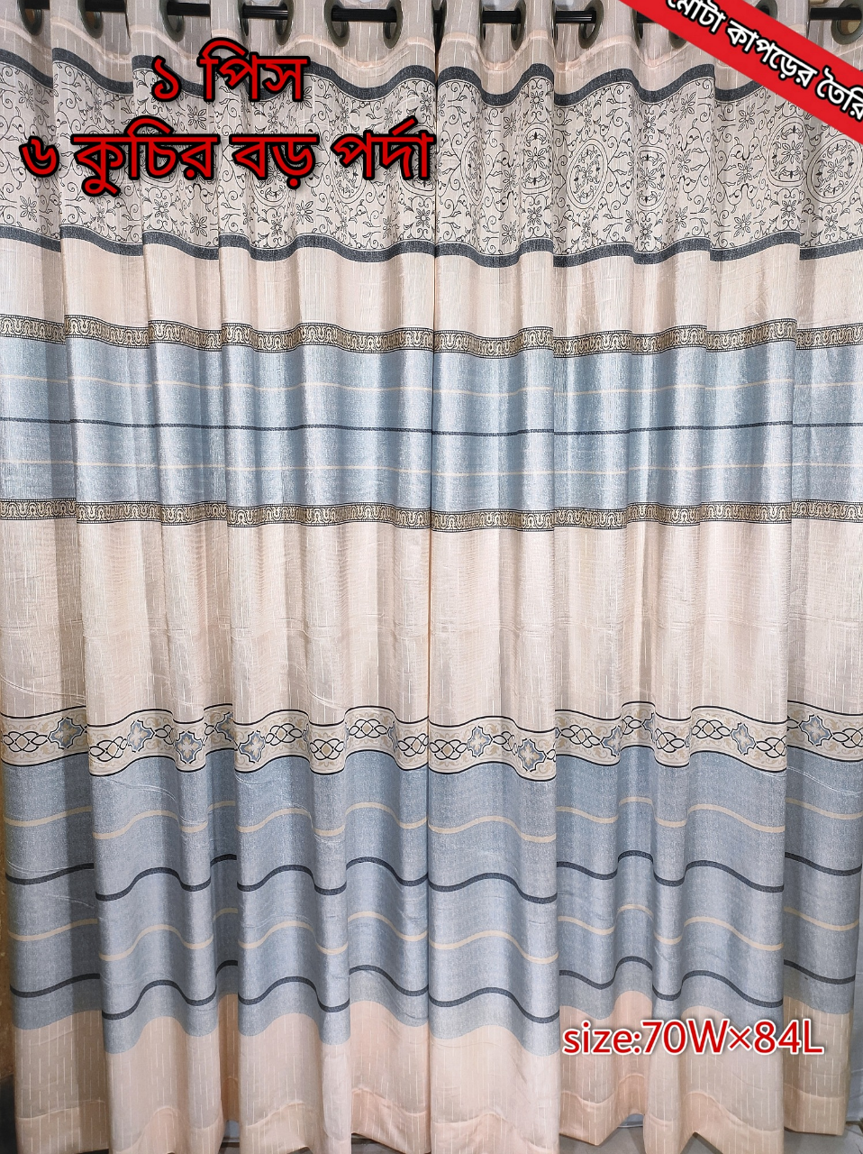 Premium quality 6 kuchi 12 eyelet ring thick Indian synthetic curtain.