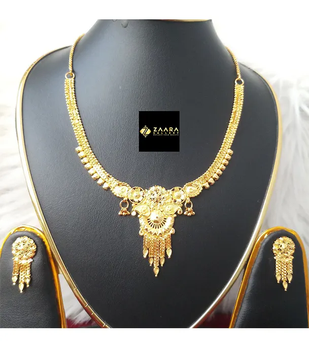 Forming Gold Plated 1.5 Gram Gold Color Polish Necklace Set With Earrings- 1 Pieces For Women