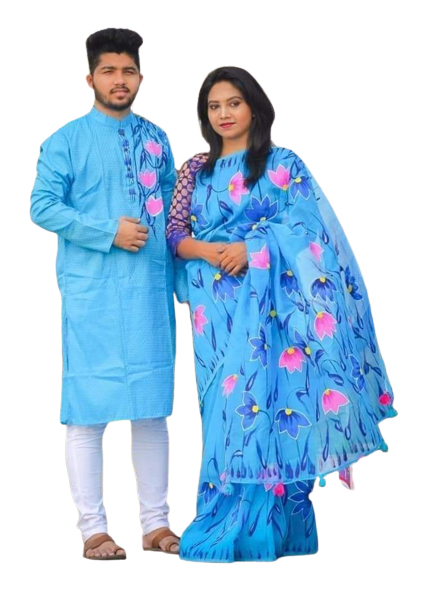 Hand Print Couple Set Sharee with Panjabi.CS-84