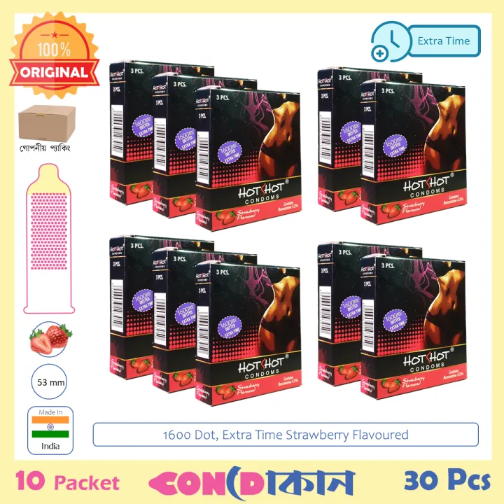 HotShot 1600 Dots Extra Time Strawberry Flavoured Condom 10 Pack (30 Pcs)