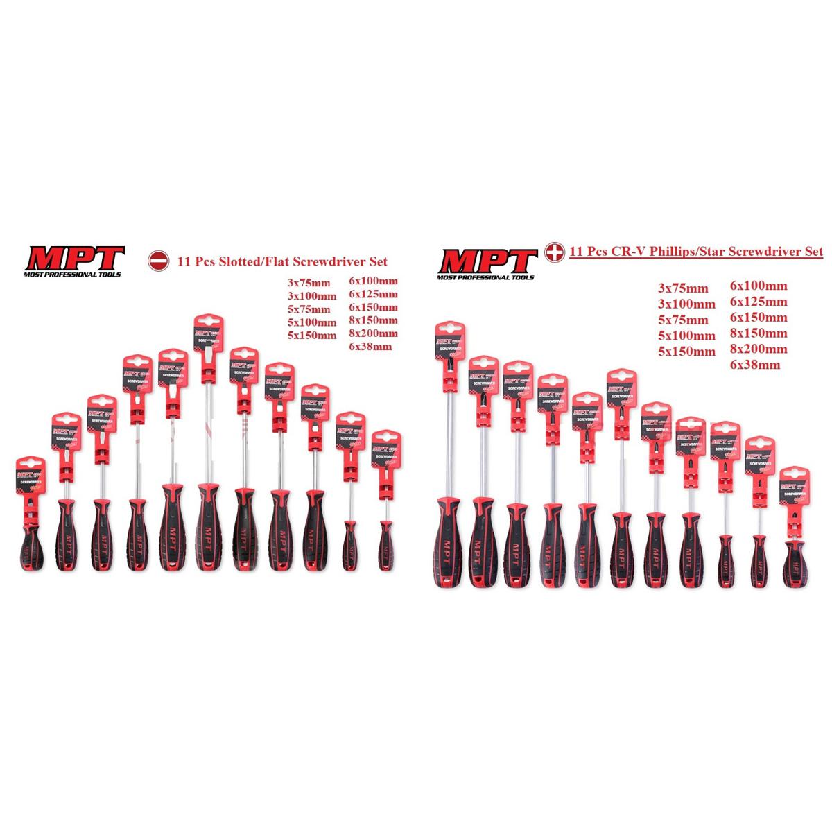 - 11 Pcs Slotted/Flat Screwdriver &11 Pcs Philip/Star Screwdriver