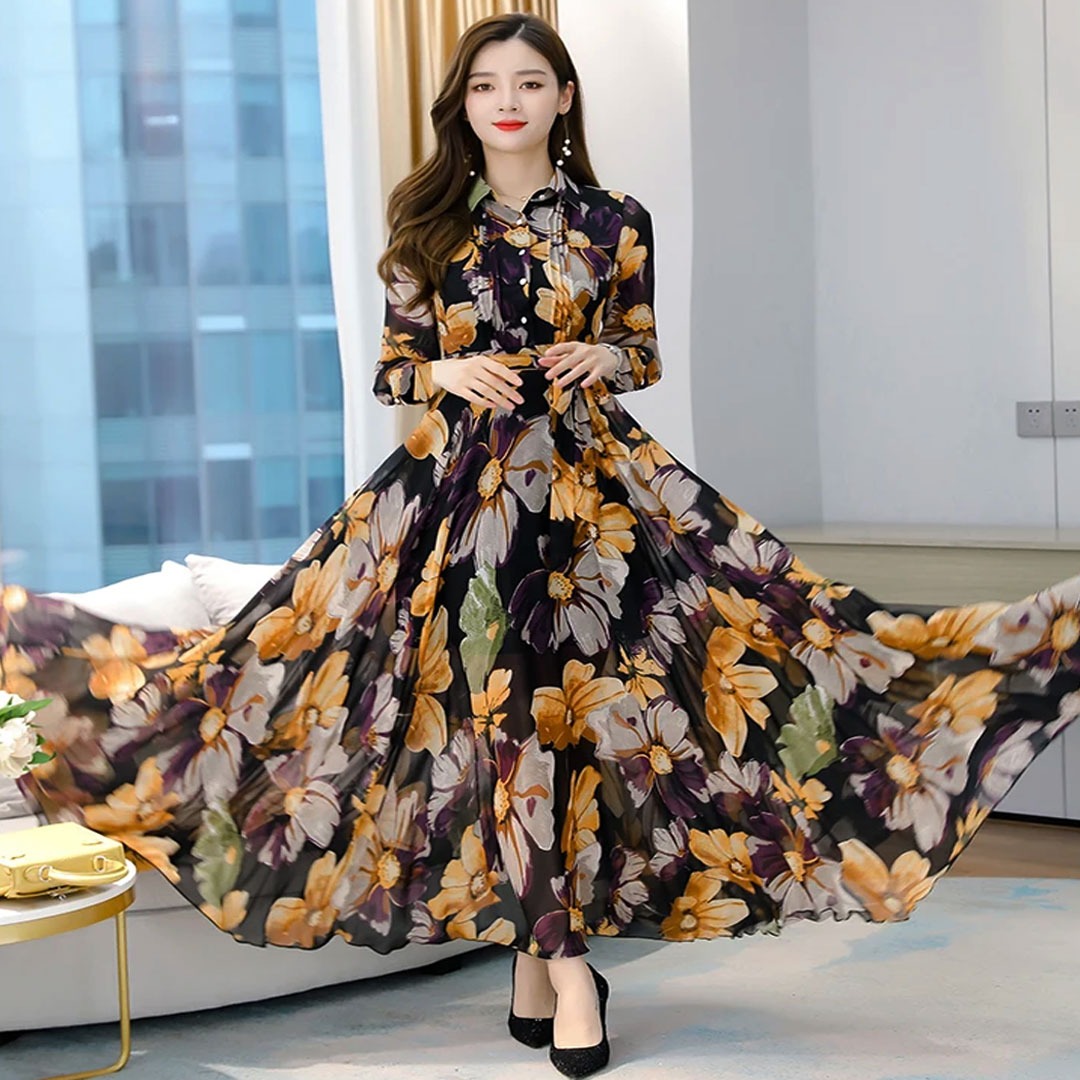 Premium 3D Digital Print Stitched Linen Gown GL-P5