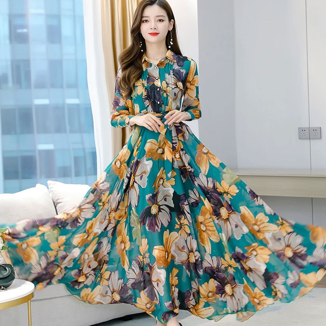Premium 3D Digital Print Stitched Linen Gown GL-P9