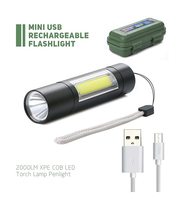 Rechargeable Flashlight Torch LED USB Portable Torches 4 Modes Mini Camping Lighting