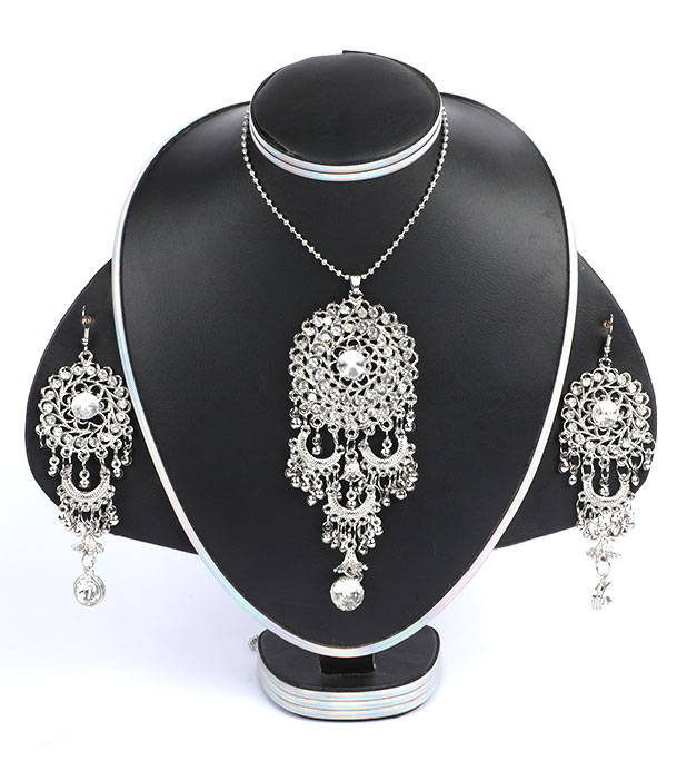 Silver Color Antique Long Chain Neckpiece For Girls and Women