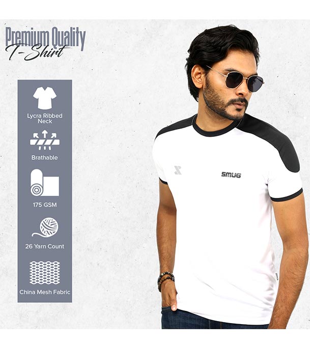 SMUG Stylish T-shirt Comfortable - New Contrast Design - White