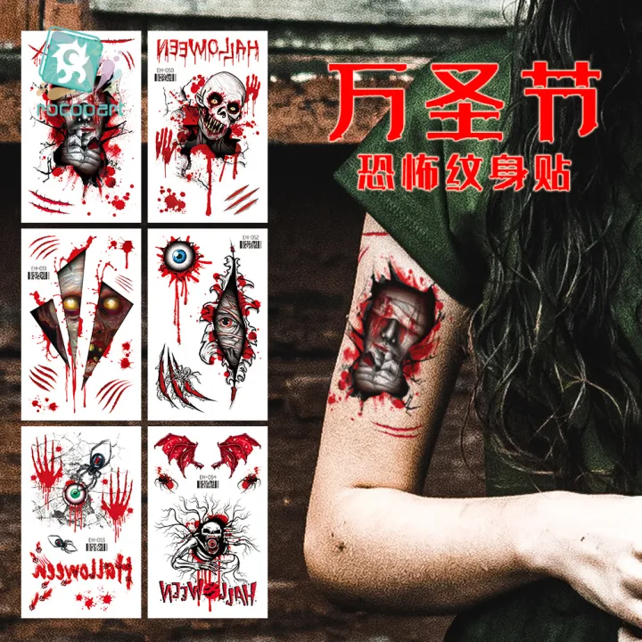 Trade Tiuozi 2024 Reikalong Halloween Tattoo Sticker Waterproof Long-lasting Horror Funny Scars for Boys and Girls