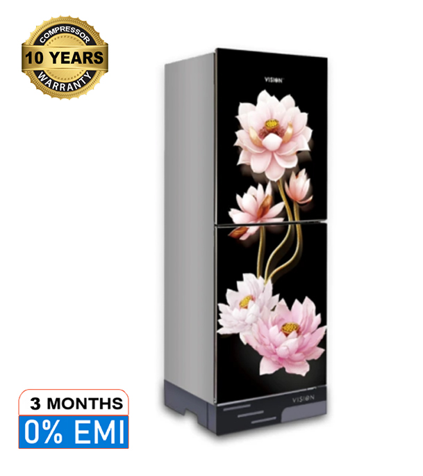 VISION Glass Door Refrigerator RE-142 Liter Dahlia Flower Top Mount